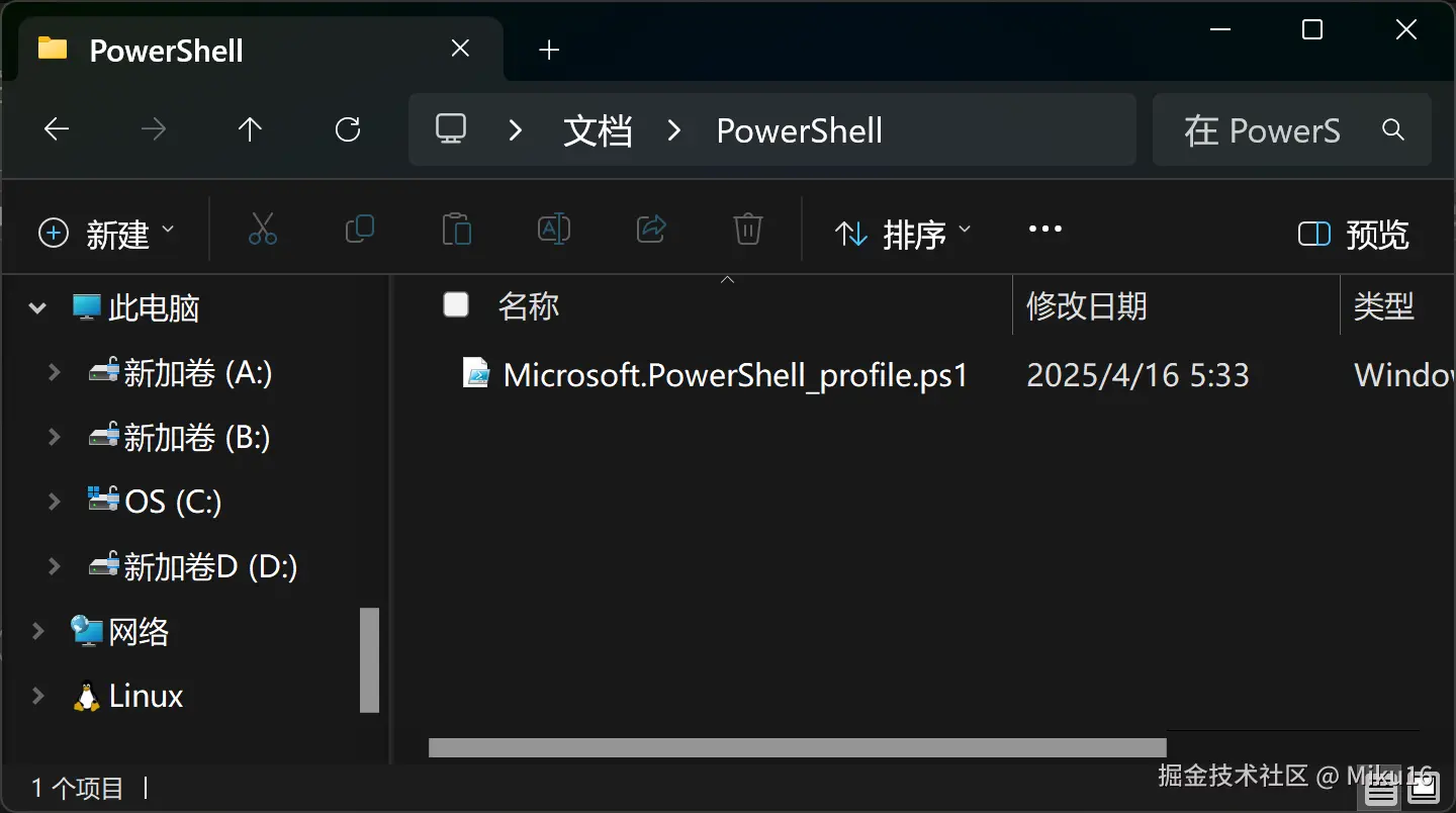 可以看到在上述目录创建出了PowerShell 配置文件,即后缀.psl的文件。
