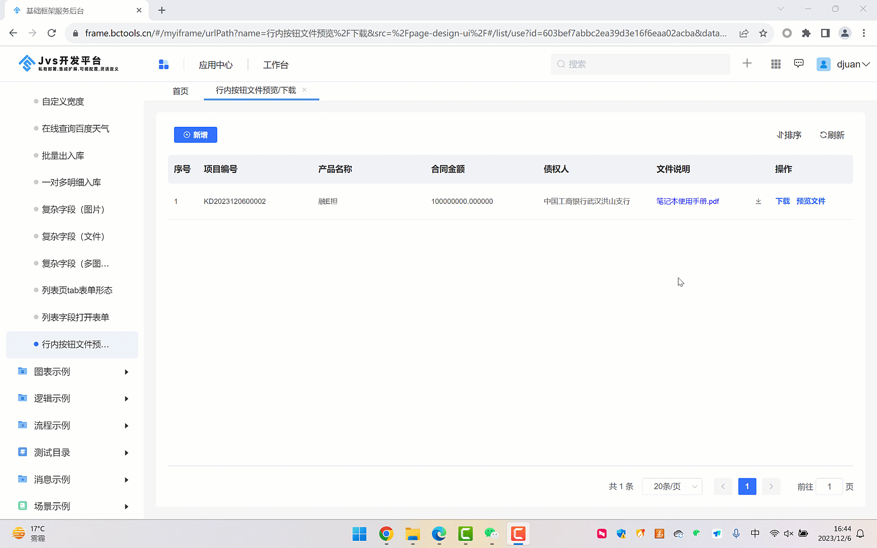 软件通常在列表页行内按钮上有文件预览或下载的功能,这样的场景我们可以直接在平台上通过配置实现。