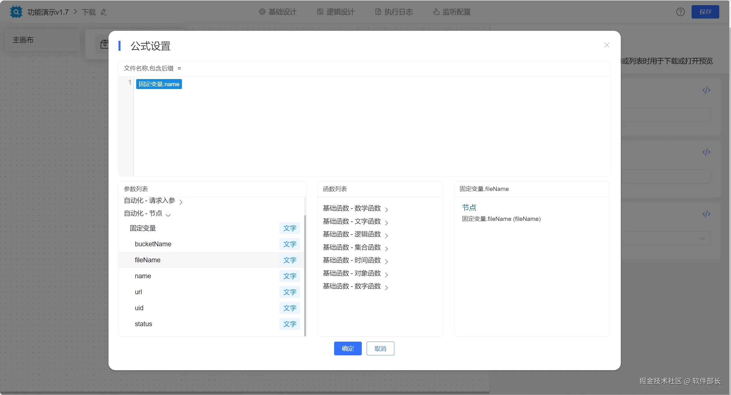 【文件预览下载】文件链接地址/文件名称,包含后缀分别通过函数取【固定变量】节点返回的值。
