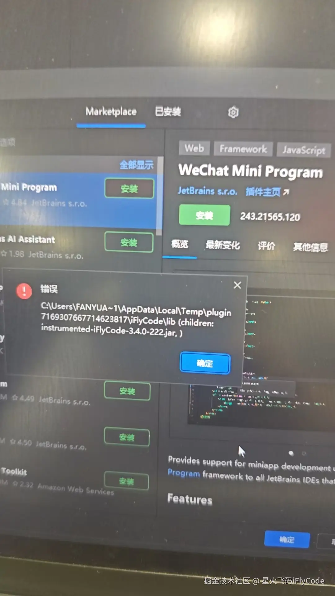 AppData\Roaming\JetBrains\IdeaIC2023.1\plugins 把所有的iflycode目录删了之后,重新安装就好了