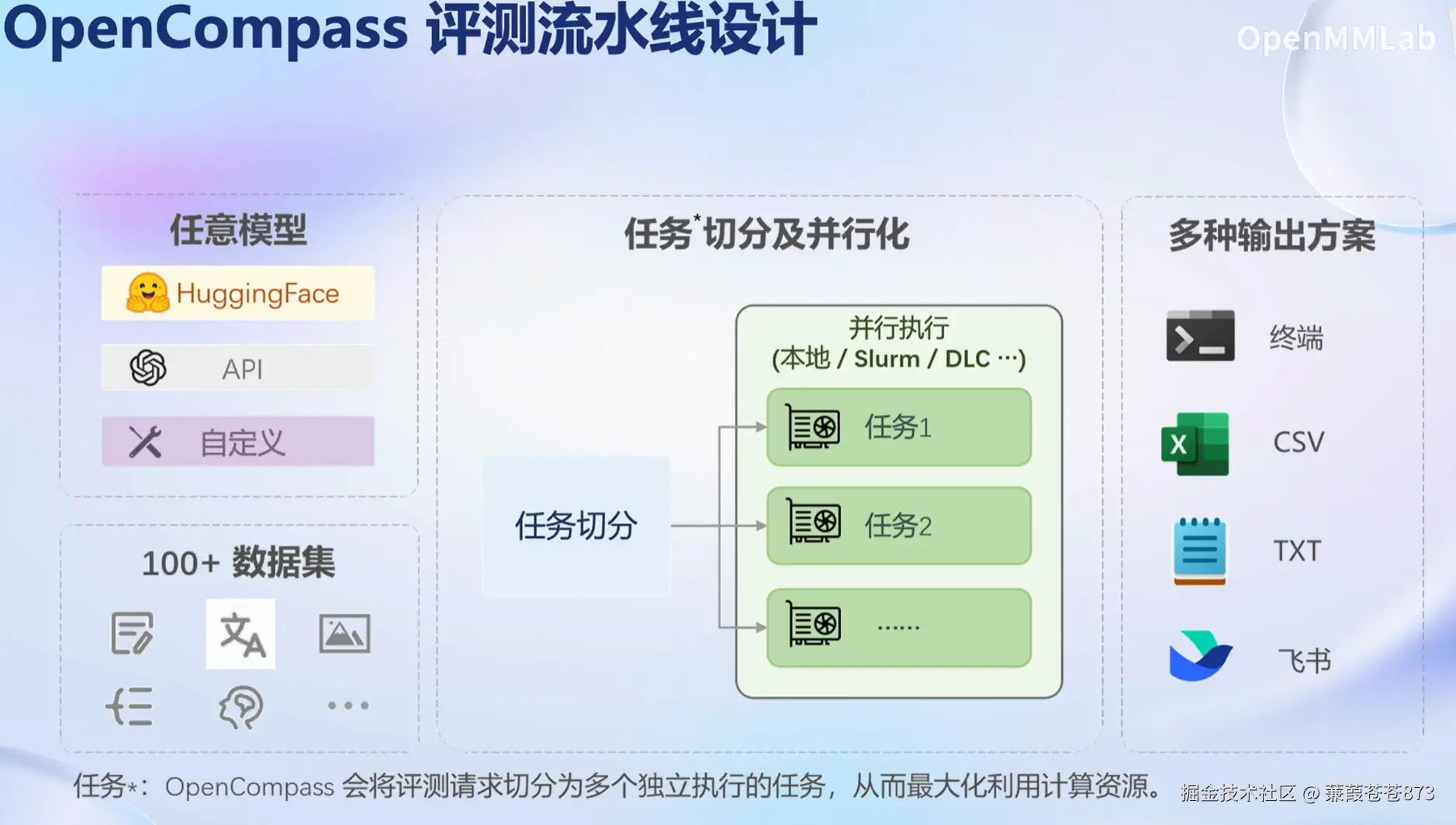在 OpenCompass 中,每个评估任务由待评估的模型和数据集组成。
