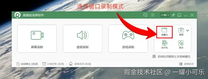 步骤1:电脑怎样录制屏幕?进入数据 蛙录屏软件的首页,可以看到有多种录制模式供你选择,比如屏幕录制、游戏录制、窗口录制等。我们以 “窗口录制” 为例。