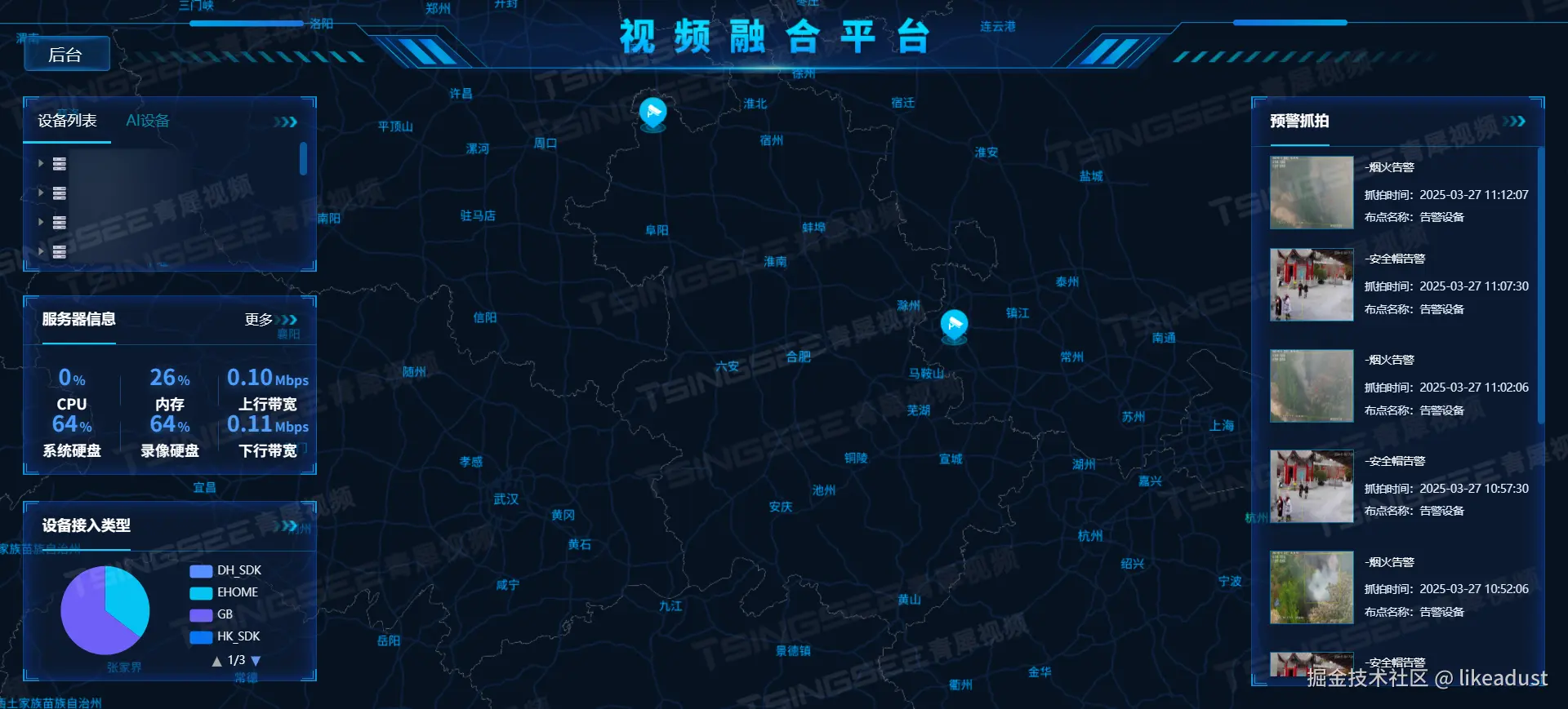 EasyCVR视频汇聚平台是一个具备高度集成化、智能化的视频监控汇聚管理平台,拥有远程视频监控、录像、云存储、录像检索与回放、语音对讲、云台控制、告警、平台级联等多项核心功能。平台通过智能化的远程监控与管理,满足各种复杂场景下的监控需求。