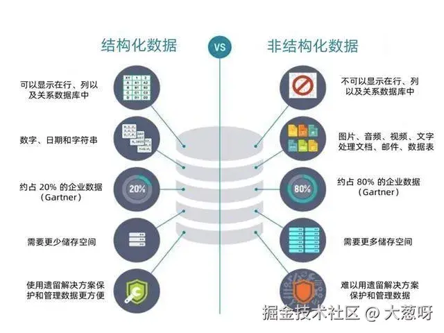 - 数据类型:可以是结构化数据(如表格数据)或非结构化数据(如文本、图像、视频)。