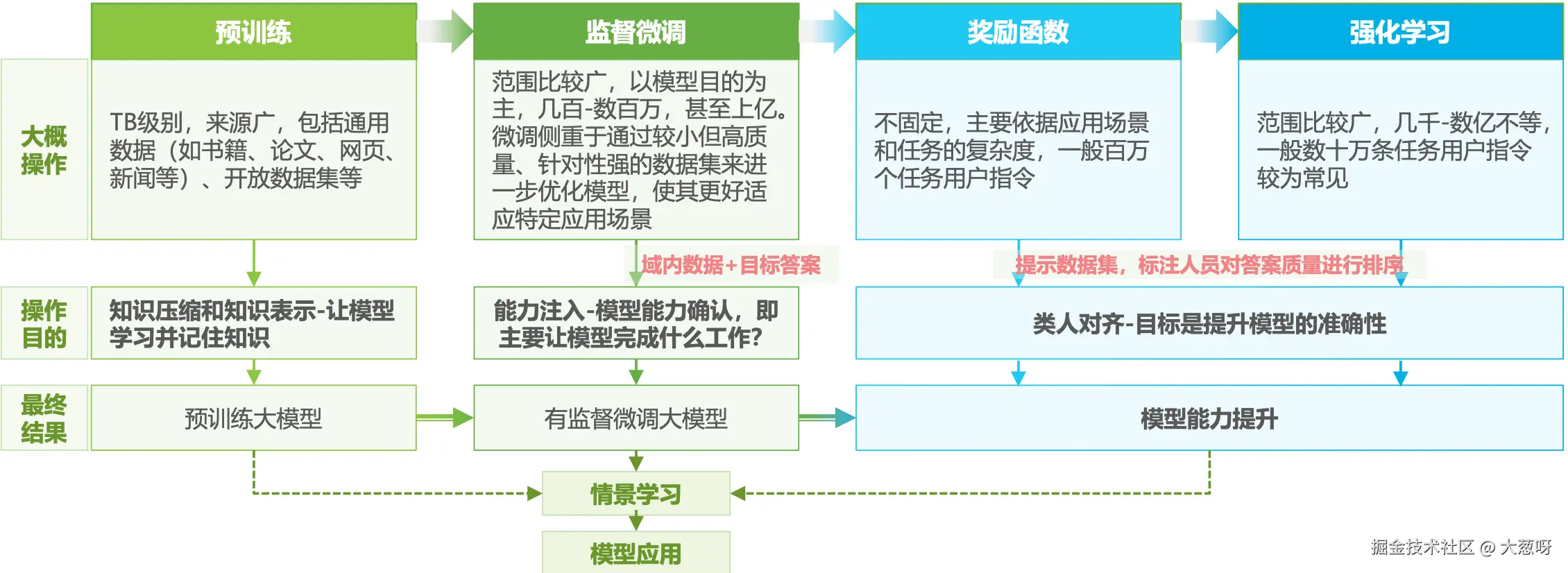 大模型能力获得主要有四步: