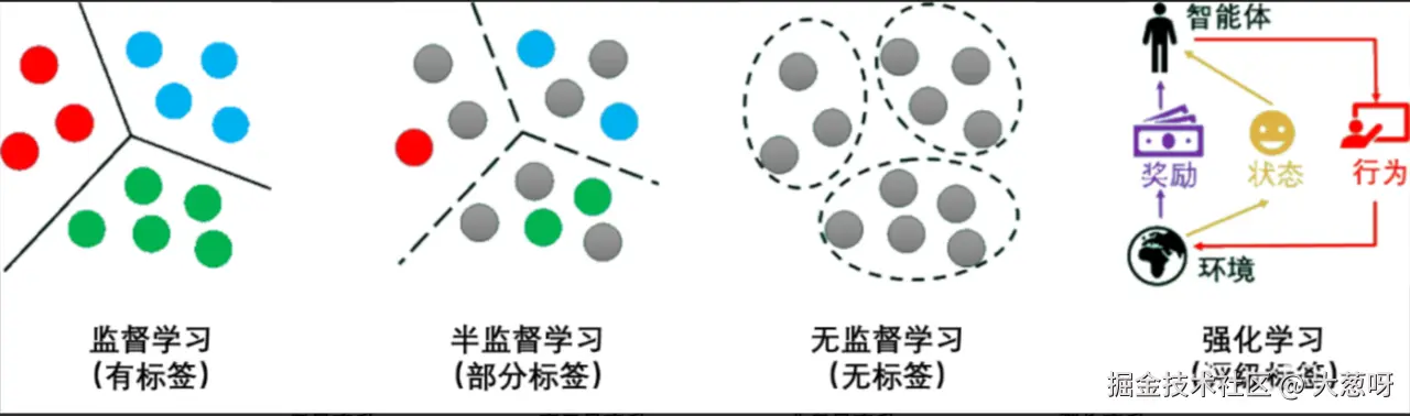 机器学习按训练方法分为3大类:监督学习、非监督学习、强化学习。所谓训练方法,就是我们让机器如何从浩瀚的数据中学习到有用的知识和规律,这和人类自身的学习过程有很多相似之处。不同的任务要求和数据特征,可能要采用不同的训练方法,或者多种训练方法的组合。