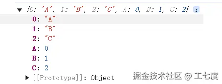 编译之后,生成一个新的对象,数字和key互相映射