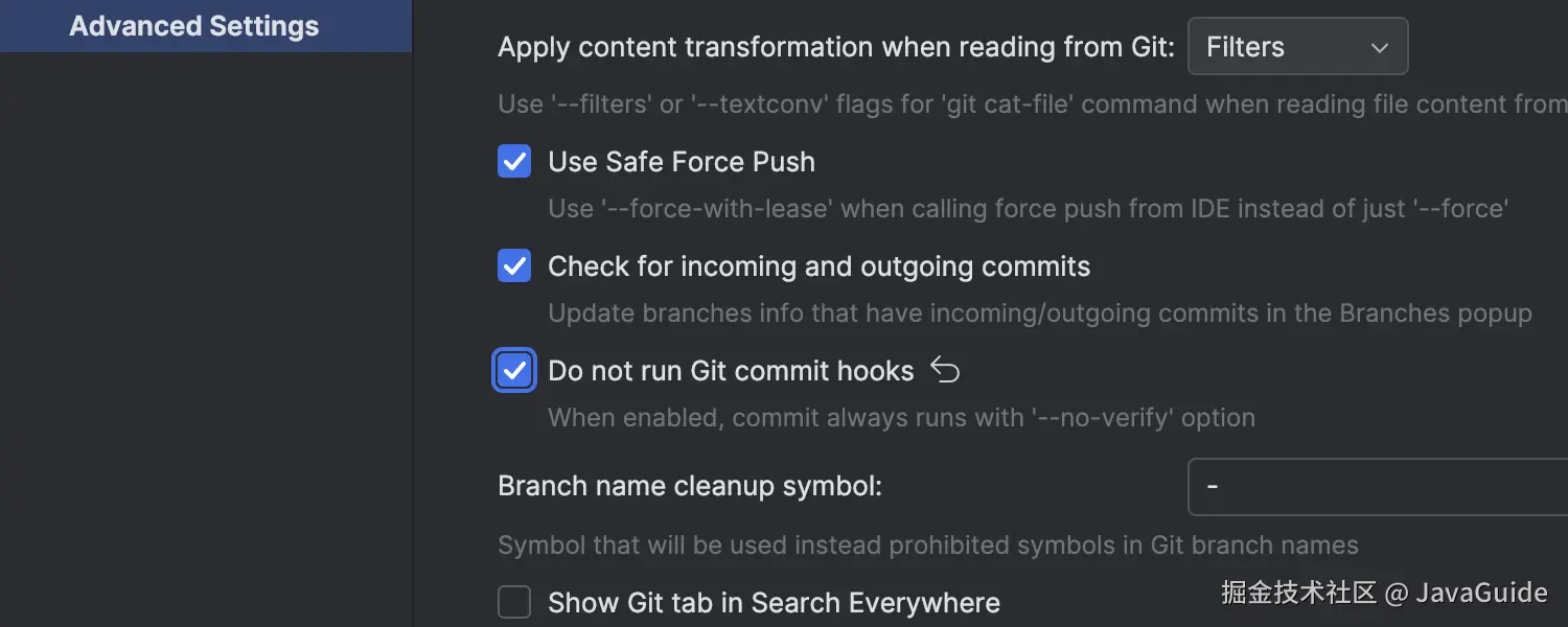 新增设置,允许指示 IDE 在执行提交操作时跳过运行 Git 钩子。