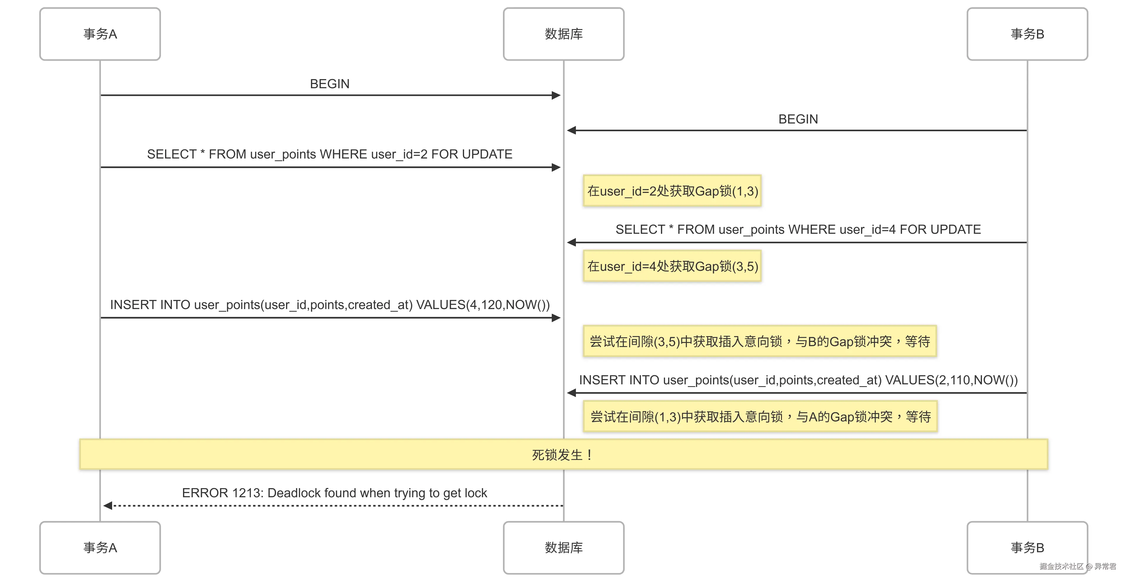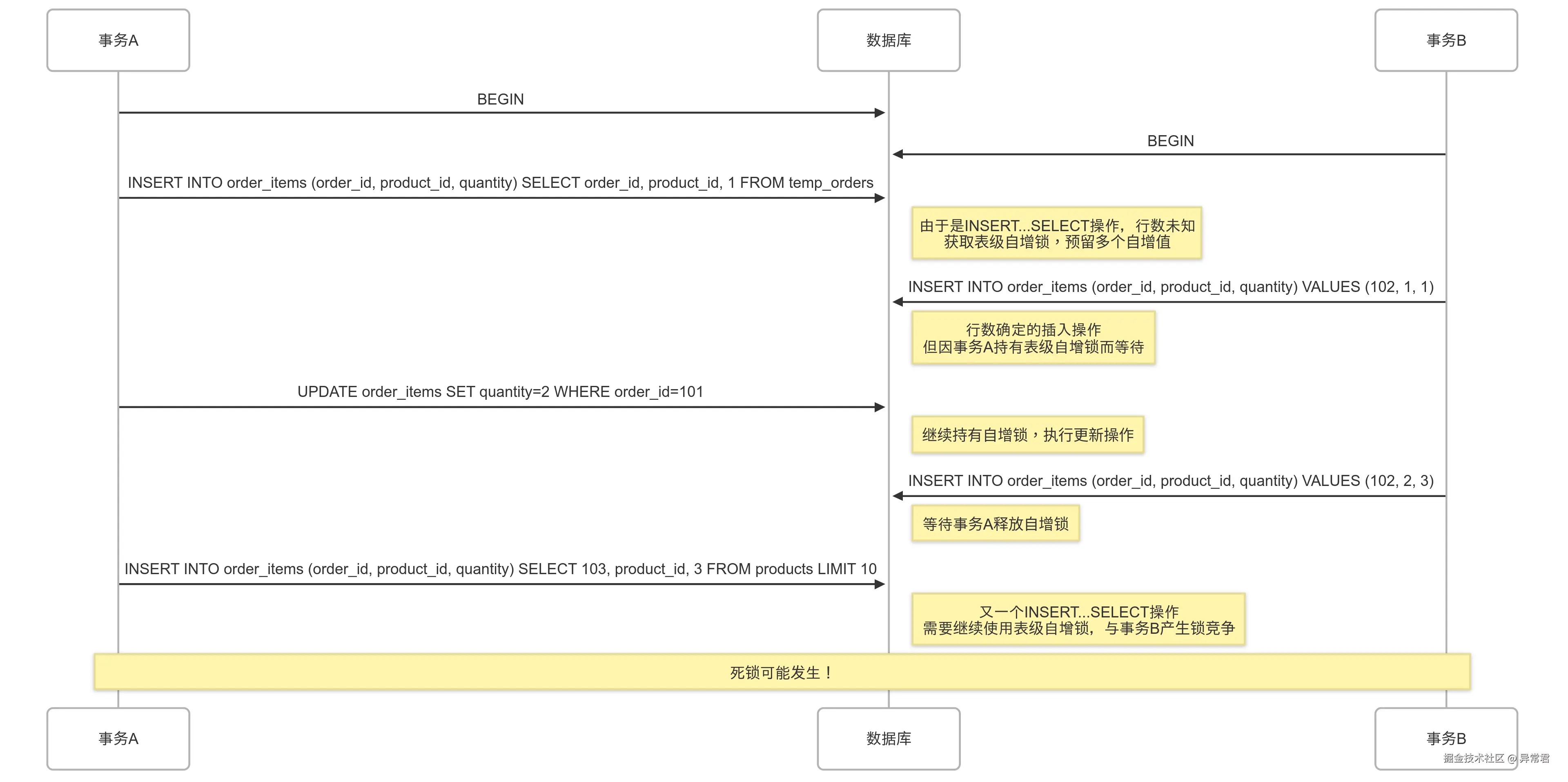 通过本文的案例和分析,相信你已经对 InnoDB 死锁有了更深入的理解。记住,死锁不可完全避免,但可以通过合理的设计和实践大大减少其发生频率和影响。当死锁发生时,保持冷静,按照本文提供的排查流程,你一定能够找到问题所在并解决它。