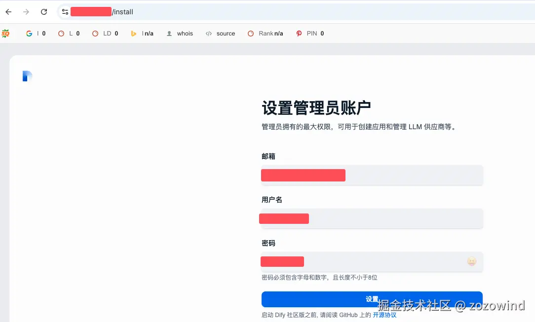访问http://<your_dify_site>/install页面