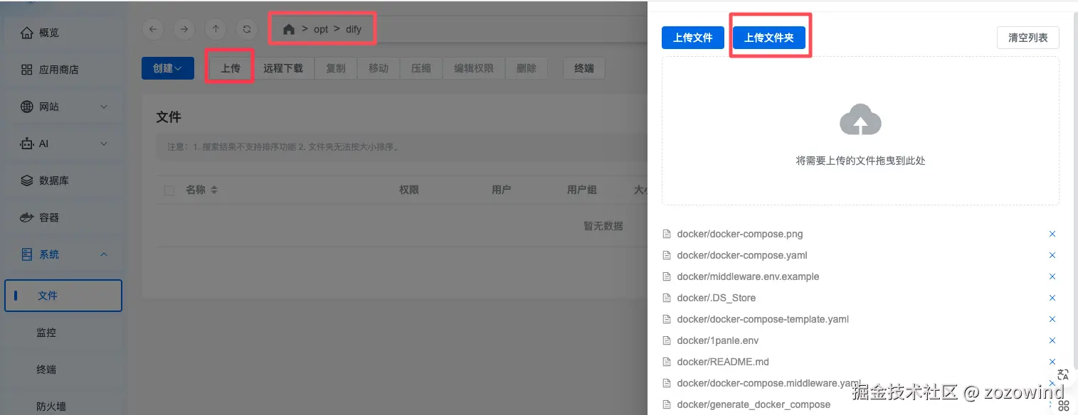 如上例:文件夹结构为/opt/dify/docker