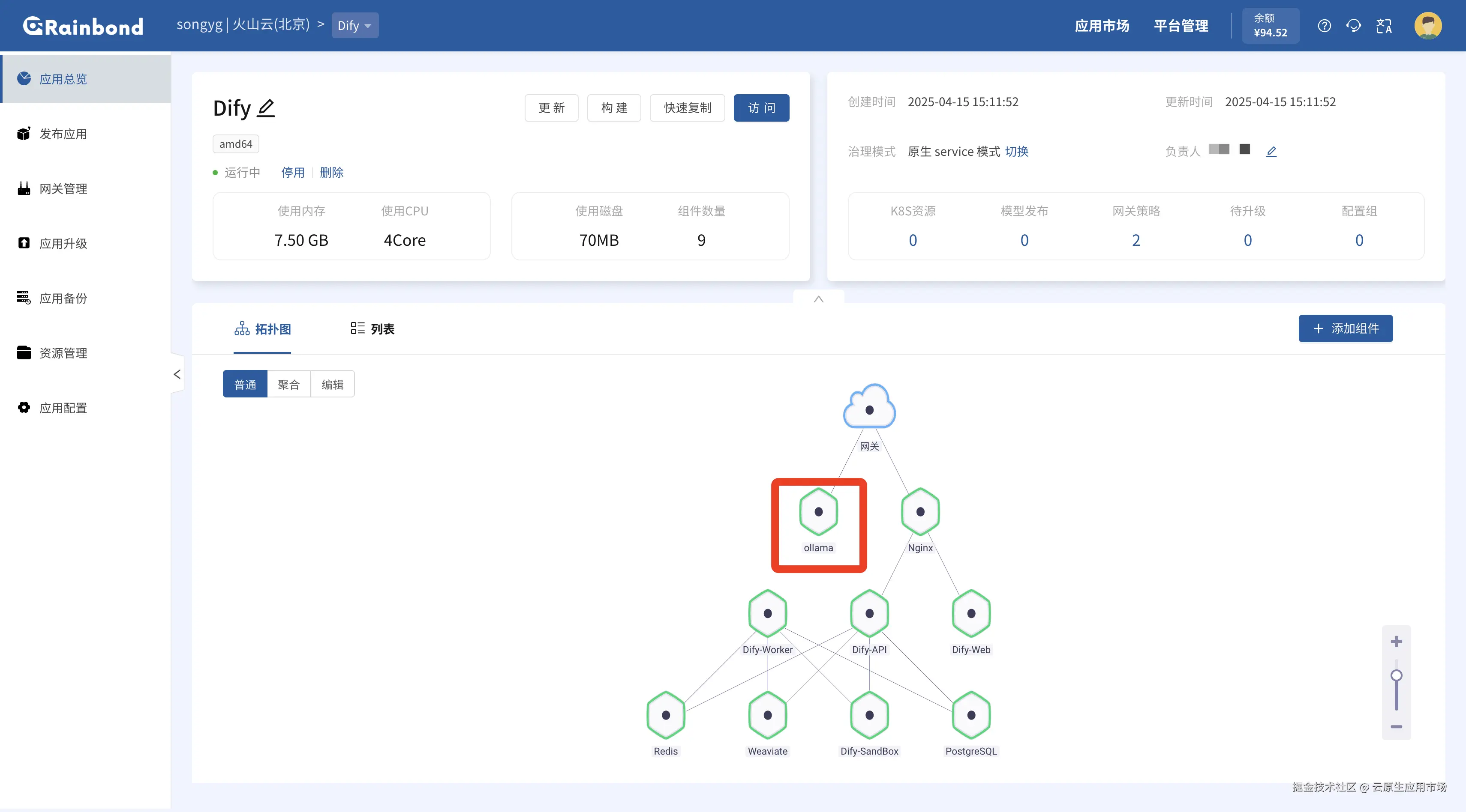 没错!使用 Rainbond Cloud 部署 Dify + Ollama 的组合让普通人也能轻松搭建私有化大模型,无需担心复杂的运维和算法细节,堪称“技术小白友好型”神器。以下是具体操作指南和优势解析,手把手教你玩转私有大模型。