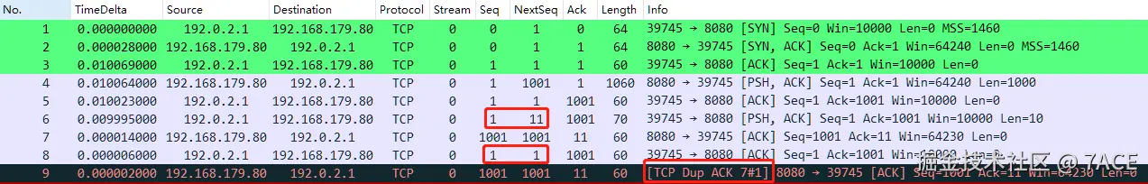 明白了什么是 TCP Dup ACK 之后,我们继续研究为什么会产生 TCP Dup ACK ,先简单的就数据包展开说明: