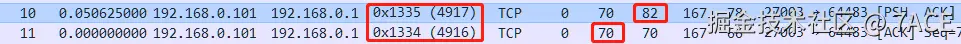 再之后仔细琢磨了下,确实不会,确实不会出现 ACK 一个 ACK,但这里有一个前提,后一个 ACK 得是正常的,或者说是有效的。而实际上 No.11 对于客户端上来说并不是有效的,因为先收到 No.10 之后,客户端接收窗口已经确认收到了 82 之前的所有数据了,而 No.11 Seq Num 70 小于 82,判断为异常,因此产生出一个 TCP Dup ACK 。
