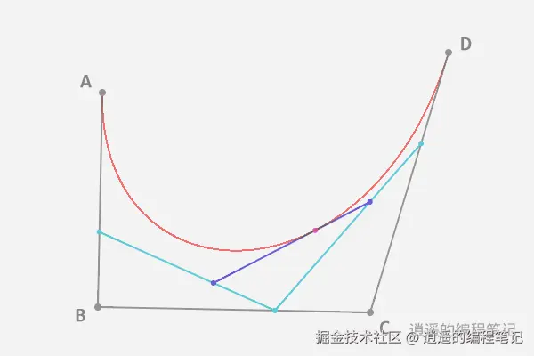控制可以有多个,比如我们可以在 AD 之间去点 B C 作为控制点,然后画出曲线 ABCD。