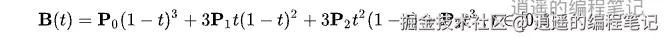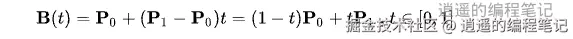 其中,B(t)是曲线上的点,P0 是起始点,P1 是结束点,P1-P0 代表两者间的距离,t 是取值在 0 到 1 之间的参数。