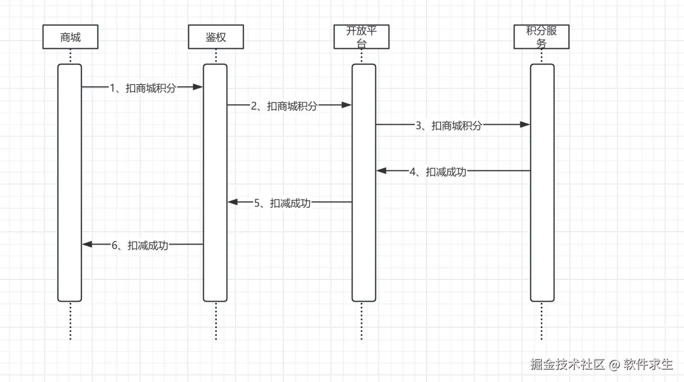 小米啊,商城下单扣积分的时候,咱们得走统一的鉴权服务,通过鉴权服务调开放平台,再调具体的积分服务,保证渠道统一调用路径。