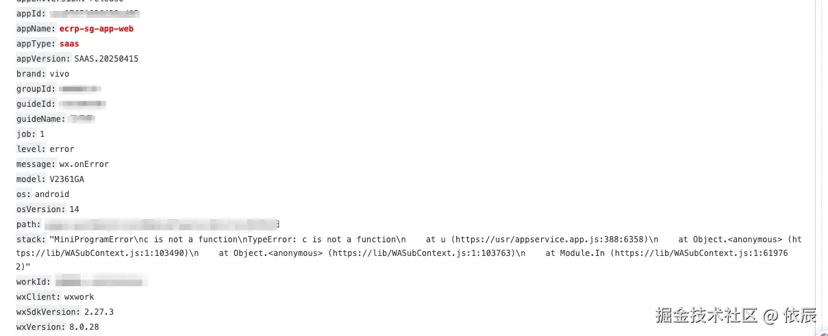 根据报错信息在错误监控平台找到具体的日志信息: