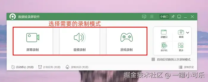 步骤1:屏幕录制下载?在电脑上通过搜索找到数据 蛙录屏软件并将其打开。进入软件主界面后,根据自身需求挑选合适的录制模式。如果你计划录制电脑屏幕内容,推荐选用 “屏幕录制” 模式。