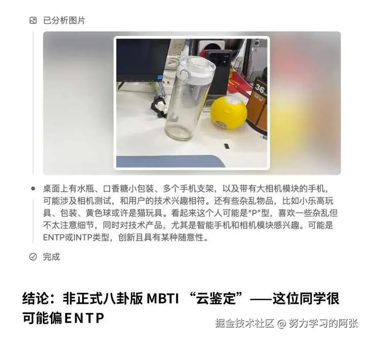 这是相当让人兴奋的部分,我们设计了一套「看工位,猜 MBTI」的挑战活动,交给 o3。