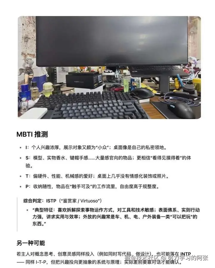工位主人表示 o3 判错了,他明明是 P 人——只是没有反映在工位布置上。只能说 GPT 有时比人更了解人自己。