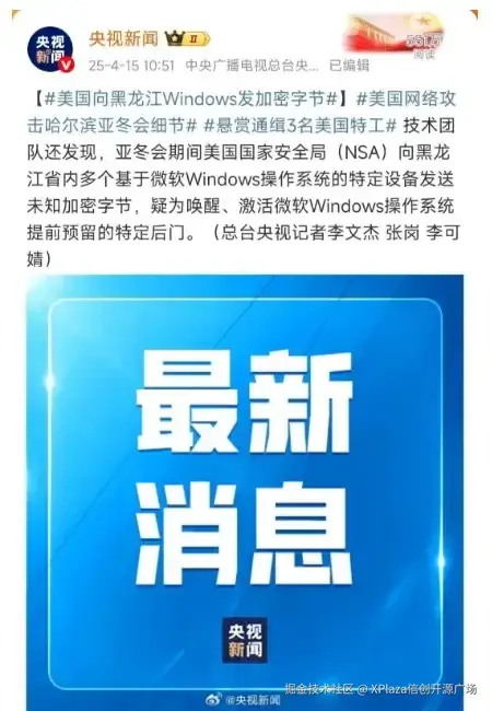 在2025年哈尔滨亚冬会期间,美国国家安全局(NSA)主导的网络攻击中,微软Windows操作系统预留的隐藏后门成为关键攻击载体。据国家计算机病毒应急处理中心披露,NSA特工通过向黑龙江省内基于Windows系统的设备发送未知加密字节,疑似激活了微软操作系统中预埋的特定后门。