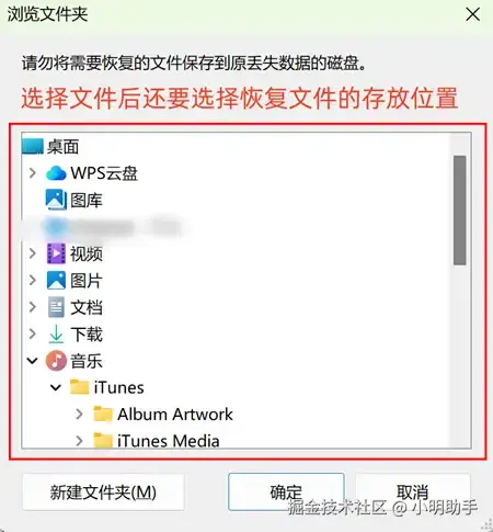步骤3:点击完【导出】后,软件会弹出小窗口,在里面选择自己需要恢复文件的电脑存储位置。