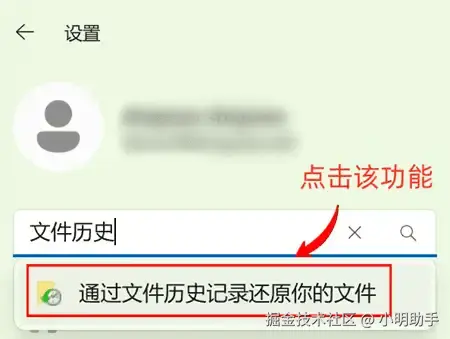 在电脑设置中找到【文件历史记录】功能(可以在搜索框中直接搜索),进入该功能页面后,点击左边【还原你的个人文件】选项。在里面选择误删文件的位置并找到备份,选择备份文件的存放位置。
