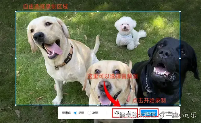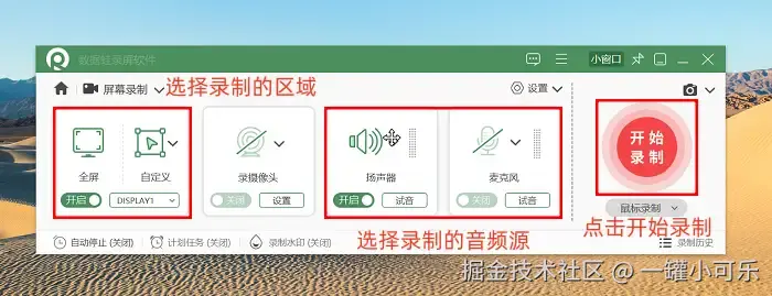 步骤2:进入视频录制模式后,首要任务是划定需要录制的屏幕区域,紧接着是音频源的选择,若想录制电脑内部发出的声音,那就勾选 “扬声器” 选项;要是希望录入外界声音,就选择 “麦克风” 。设置好了之后,点击 “开始录制” 按钮,就可以开启录制了。