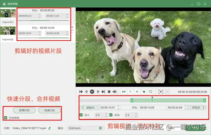 步骤3:当完成录制后,如果觉得视频需要进一步加工处理,无需再借助其他复杂的剪辑软件,数据蛙录屏软件自带强大的剪辑功能。直接点击 “高级剪辑” 选项,在这里,你可以轻松实现快速分段,也能进行快速合并,甚至还能为视频增添各类特效哦。