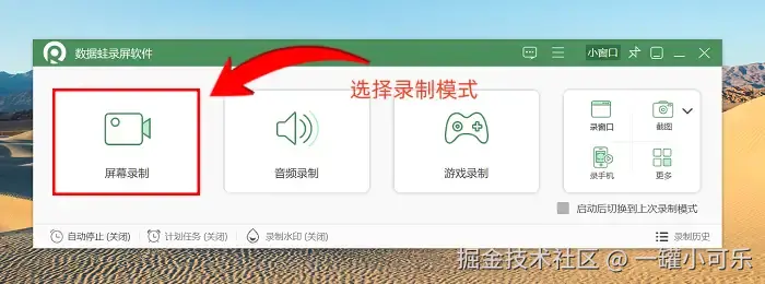 步骤1:点击打开数据 蛙录屏软件,软件提供了丰富多样的录制模式,像屏幕录制、游戏录制、音频录制等,大家可根据自身需求挑选。今天我们以 “屏幕录制” 模式为例展开介绍。