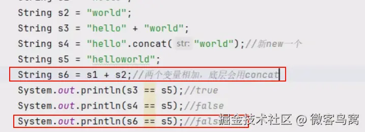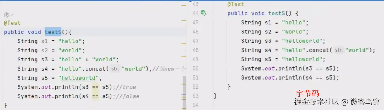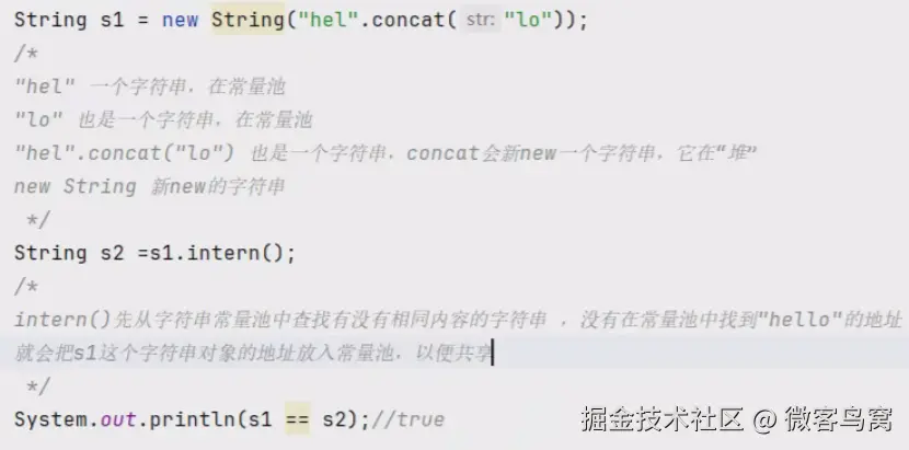 //因为这里"hello"被共享了,它是字符串常量,s1和s2使用同一个"hello"对象
