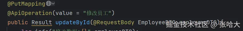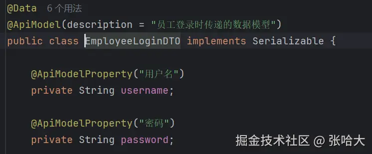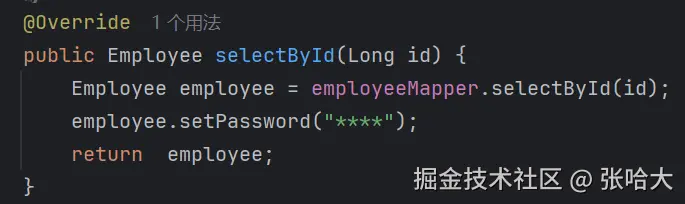 3.写查询回显的接口(根据id查询)时,因为接口文档要求返回员工的所有数据给客户端(那么其中就包含了员工的密码),虽然员工的密码进行了MD5加密后再存入的数据库,但是加密的密码是不是也不要显示给客户端,别人一个F12看到那个密码总归是不好的(保证安全) ,所以我们就给从数据库中查到的值重新赋值一个密码(不要把密码给暴露出去,不管是不是加密的)