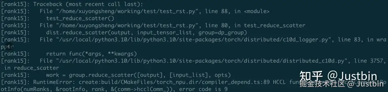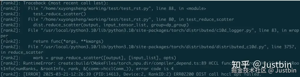 训推场景Atlas800T A2服务器多机间通信有问题,报错timeout,客户用hccn_tool测试了多机卡间能够互通,但是直接执行"dist.reduce_scatter(output, input_tensor_list, group=dp_group)" 还是会timeout。报错信息rank0 是error 4, rank1 是 error9