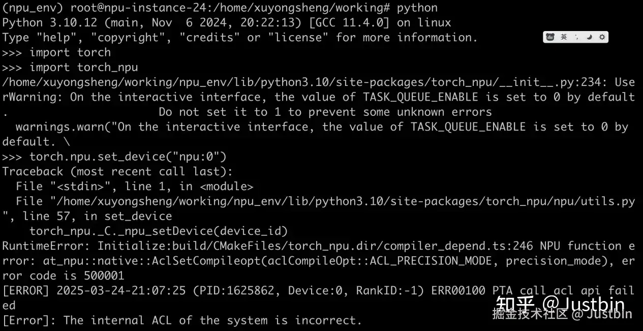 发现,导入torch_npu没问题,set_device()报错。通过版本配套检查发现,客户torch和torch_npu是2.5.1的版本,CANN版本是8.0.0,CANN版本与torch版本不配套,将torch和torch_npu版本降到2.4.0.post2解决。