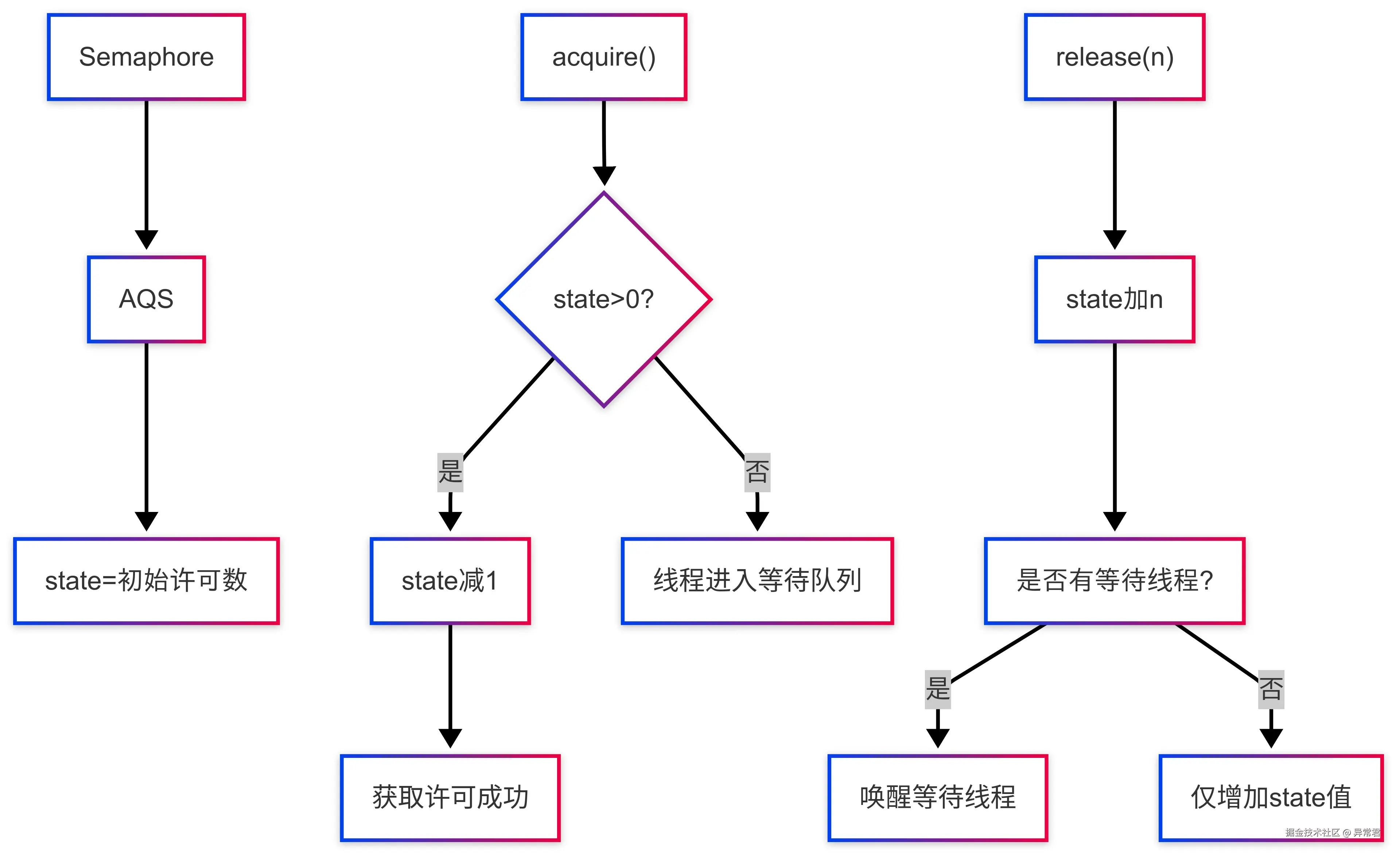 | Semaphore | 控制并发访问资源的线程数 | acquire() release() tryAcquire() | 连接池管理 流量控制 资源访问限制 | finally 中释放许可 匹配获取释放数量 避免许可泄漏 |