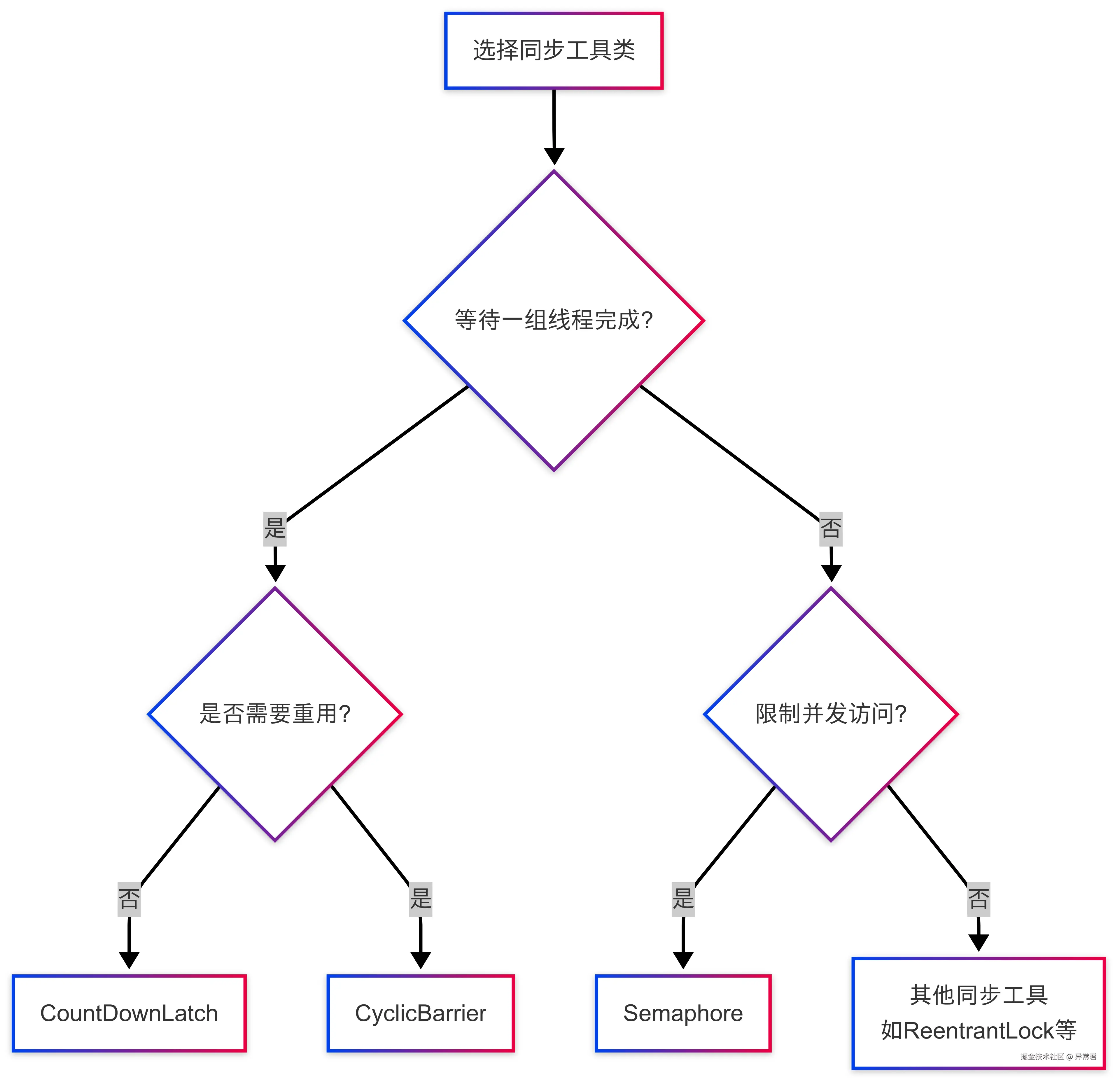 Java 提供的 CountDownLatch、CyclicBarrier 和 Semaphore 这三个同步工具类,为我们解决多线程协作问题提供了强大支持。下面的表格总结了它们的主要特点和使用场景: