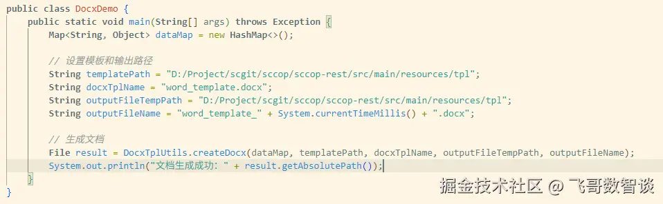DocxTplUtils.createDocx(dataMap, templatePath, docxTplName, outputFileTempPath, outputFileName);