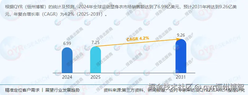 本报告基于QYResearch的统计及预测,对全球运动塑身衣市场进行了深入分析。报告涵盖了市场规模、供应链结构、上下游分析、主要生产商企业、政策环境、市场趋势及未来前景等多个方面。报告指出,2024年全球运动塑身衣市场销售额达到了6.99亿美元,预计2031年将达到9.26亿美元,年复合增长率(CAGR)为4.2%(2025-2031)。随着后疫情时代居民增强体质的需求增加以及体育产业的多元化发展,运动塑身衣市场展现出强劲的增长势头。