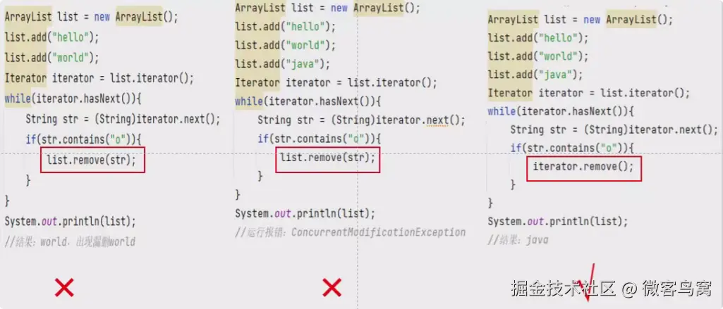listIterator.remove();//迭代器的remove方法,不是集合的remove方法