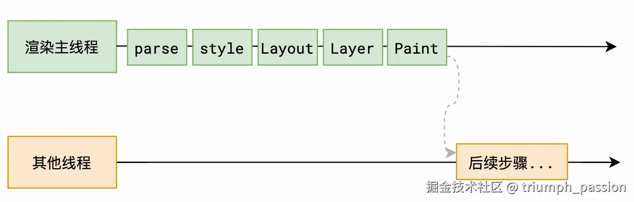 渲染主线程的⼯作到此为⽌,剩余步骤交给其他线程完成