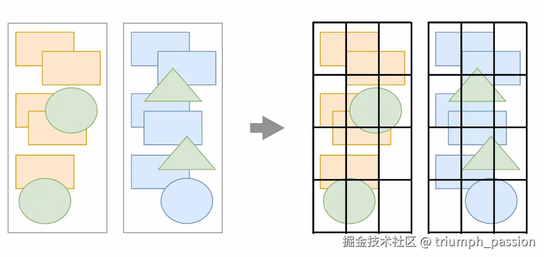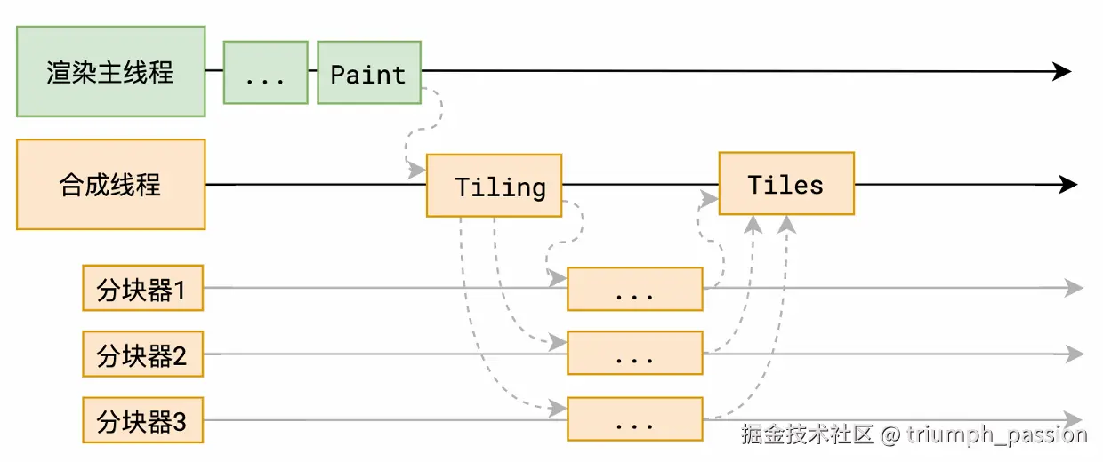 合成线程首先对每个图层进行分块,将其划分为更多的小区域。