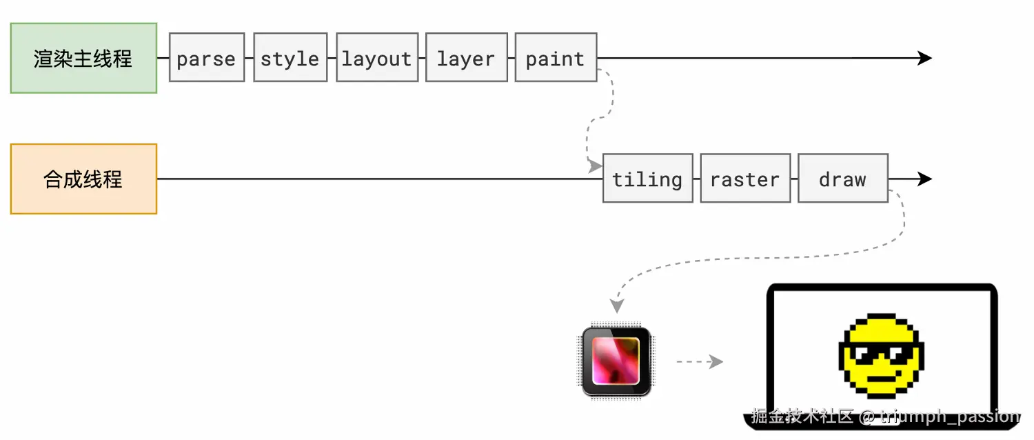 合成线程会将块信息交给 GPU 进程,以极高的速度完成光栅化。