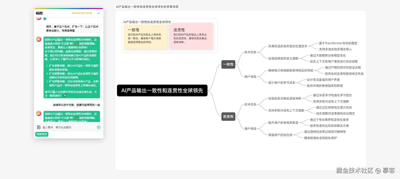 便签智能联想:在头脑风暴中,AI可给出扩展建议、同义节点、补充想法;