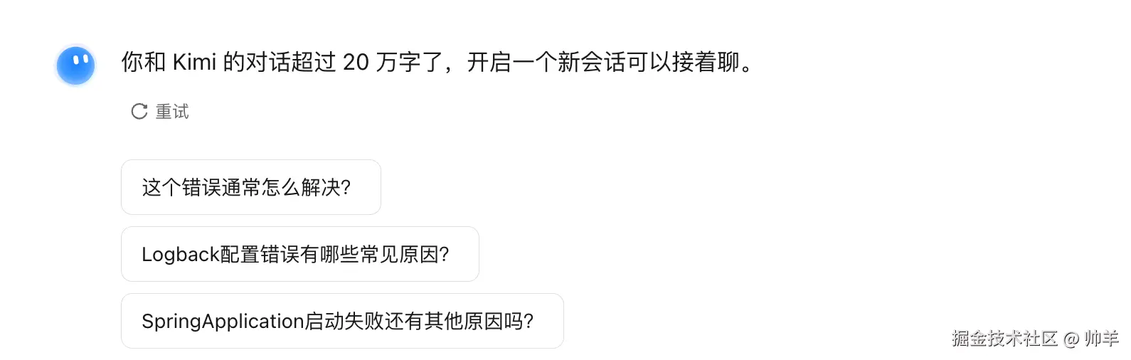 如果用户输入 + 模型输出的 token 总长度超过了模型的最大长度,模型工作的效果就会大打折扣,甚至无法工作。以 kimi 为例,一个会话的 token 总长度如果超过 20w 字,web服务会拒绝请求模型服务。