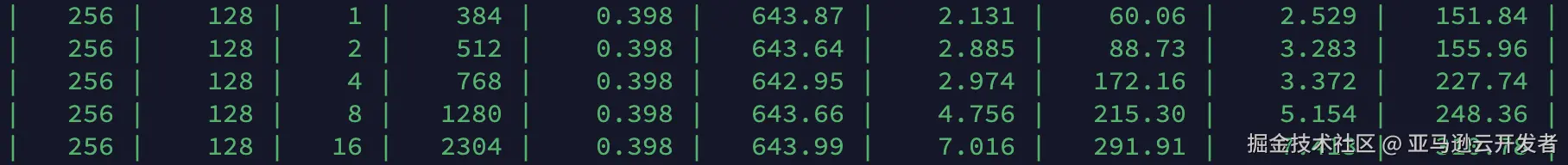 所以在生成 128token 的场景测试中,生成 token 的速度可以在 16 个 batch 场景下达到 296 t/s。