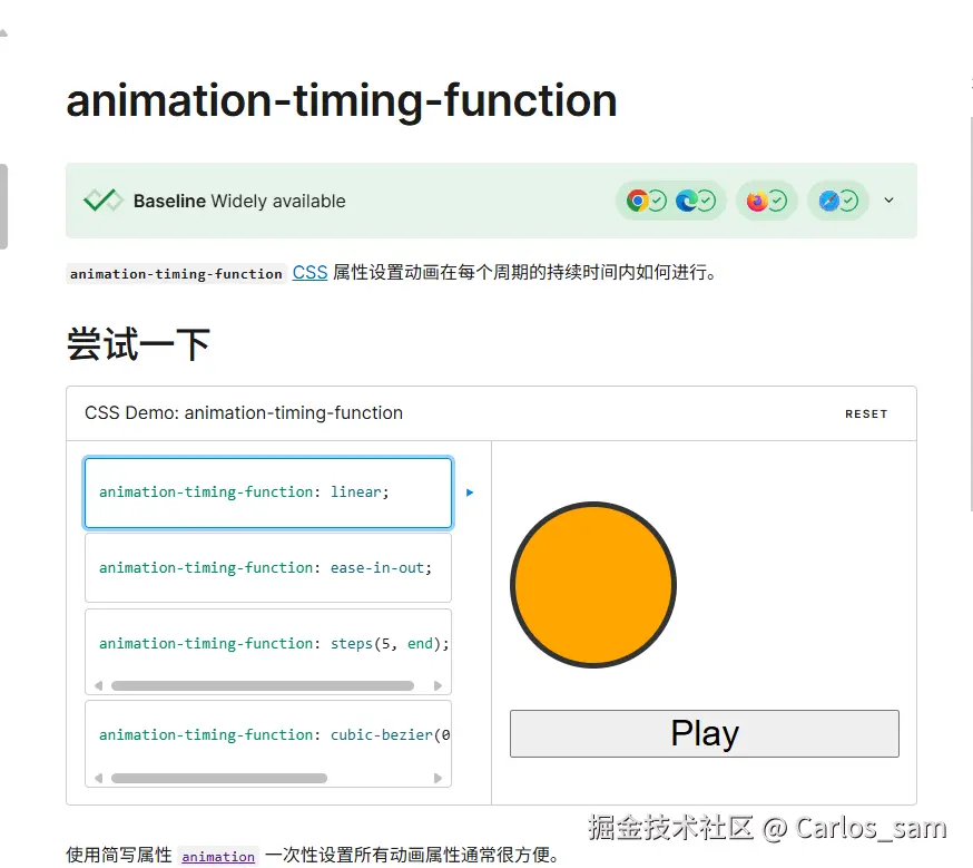 缓动函数在动画中十分的重要,它定义了动画在持续时间内是如何进行。像 CSS 动画中也有设置缓动函数的属性: