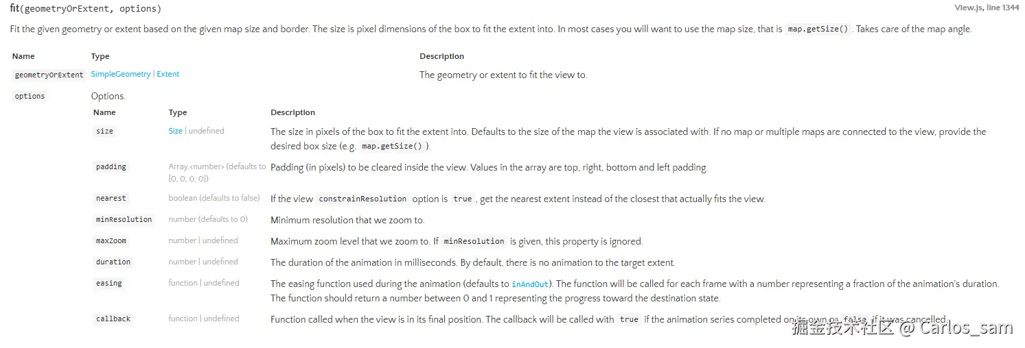 center、zoom、resolution、rotation,用于设置视图该如何变化。 - 动画参数,