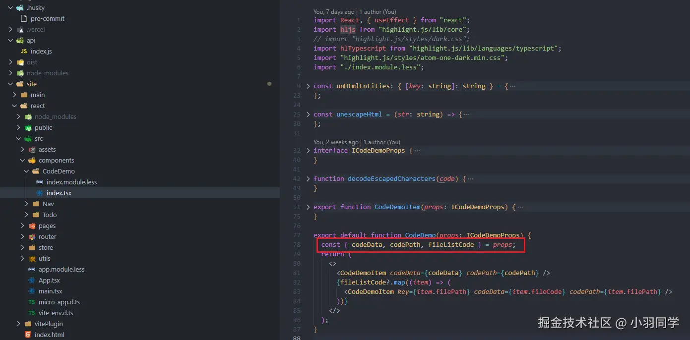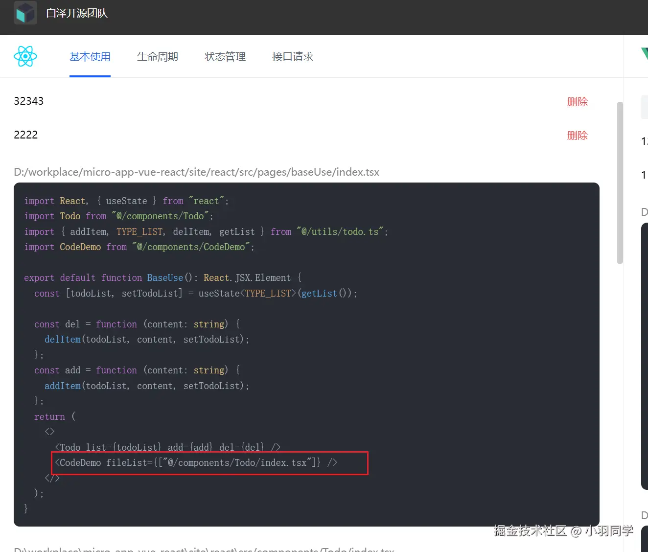 哦,easy,咱们可以看到里面划分了父子组件(CodeDemo 和 CodeDemoItem)。