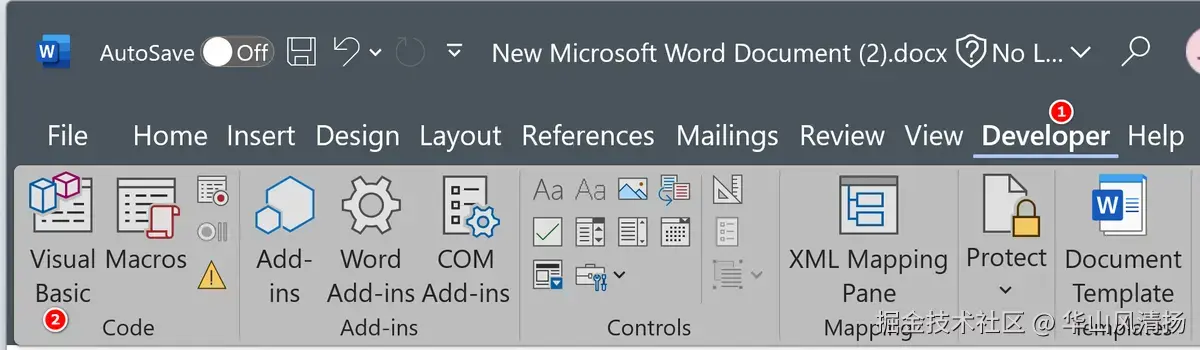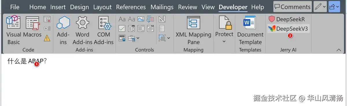 将 Word 与 DeepSeek 集成,我想到的一种思路是在 Word 中创建一个宏,把能调用 DeepSeek API 的 Visual Basic 代码置于该宏之中。 我们首要的任务是将 Word 里创建宏的入口显示在 Word 的工具栏上。